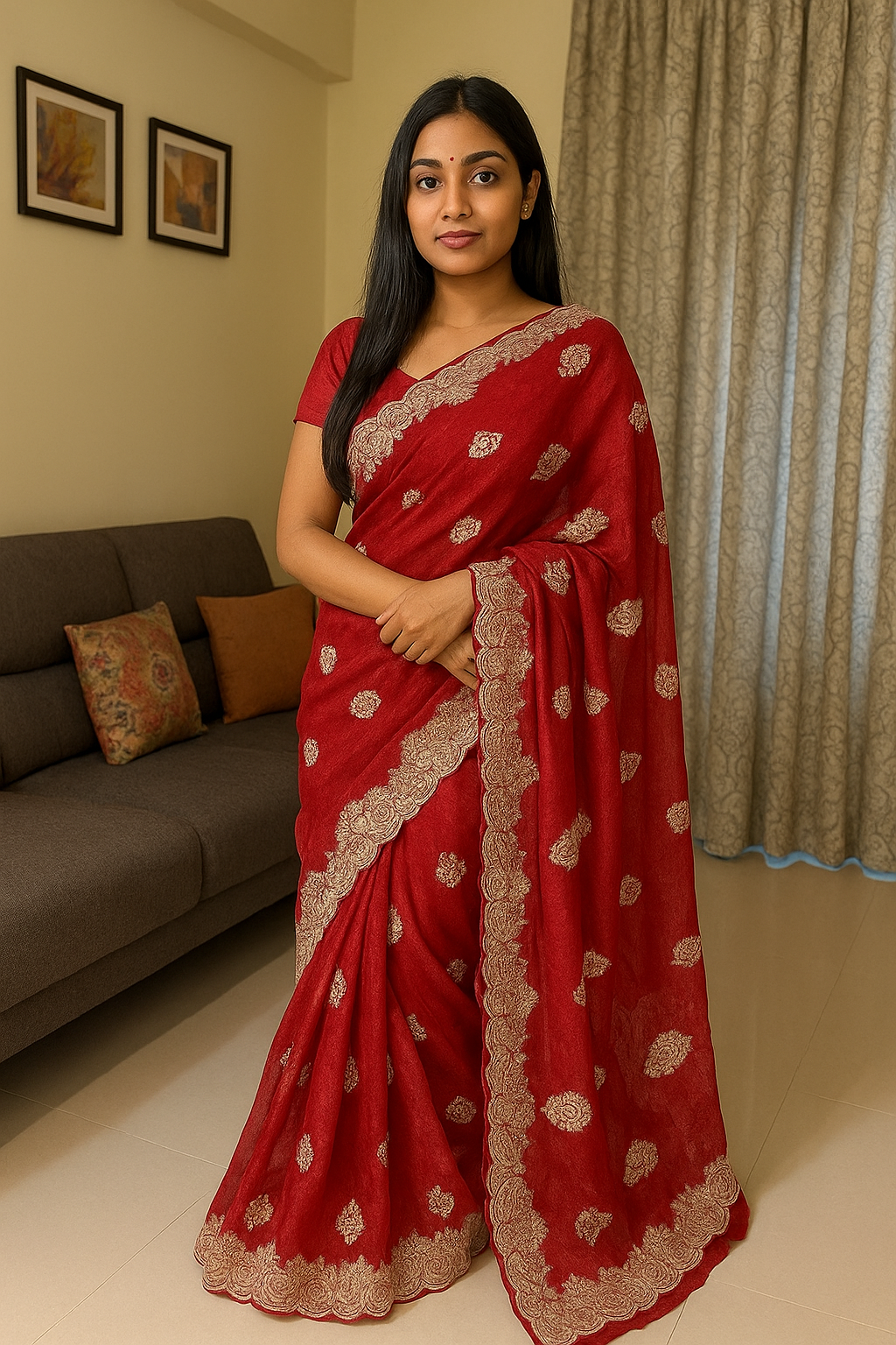 saree High-quality georgette, a lightweight and flowing fabric made from highly twisted yarns.